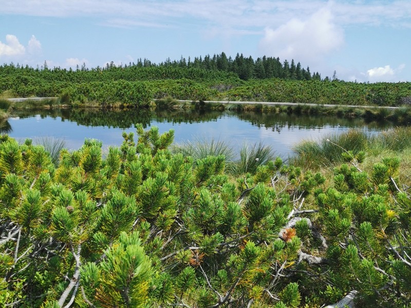 Pot med krošnjami. Gozdne poti. Krave. Jezera. Borovnice. In odličen borovničev zavitek.